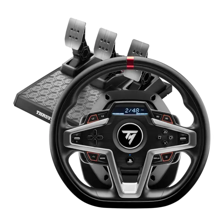 Thrustmaster T248R er et solid mellomvalg som bruker hybrid force feedback, en kombinasjon av belte- og girdrift, som gir sterkere og jevnere motstand enn rene gear-drevne ratt. Den skiller seg ut med en integrert LCD-skjerm som viser sanntidsdata som turtall, rundetider og girvalg direkte på rattet.